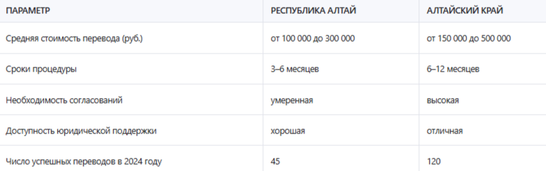 Важно также учитывать, что земли, находящиеся в границах особо охраняемых природных территорий (ООПТ), не подлежат переводу без специального разрешения. В Республике Алтай таких территорий насчитывается более 20, включая Телецкое озеро, Уч-Энмех и другие.
